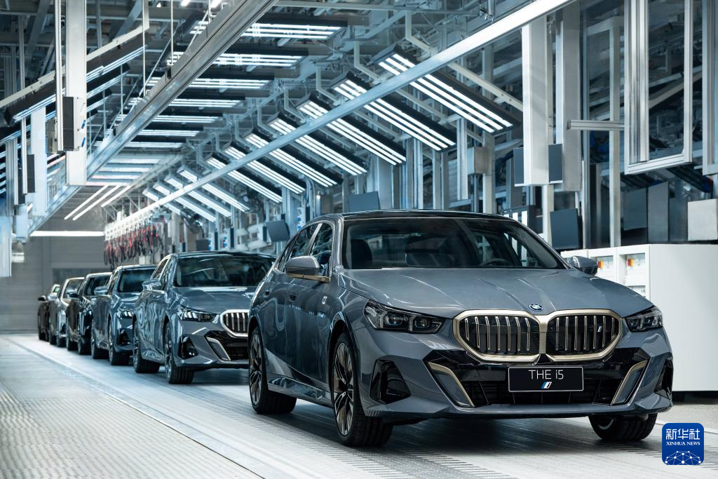 寶馬i5純電動(dòng)汽車從位于遼寧的大東工廠下線(2024年1月8日攝)。新華社發(fā)(寶馬集團(tuán)供圖)