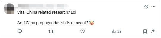在該所X平臺(tái)賬號(hào)轉(zhuǎn)發(fā)《華爾街日?qǐng)?bào)》報(bào)道的評(píng)論區(qū),有人說:“重要的中國相關(guān)研究?哈哈哈,你說的是反華宣傳吧?!?/p>