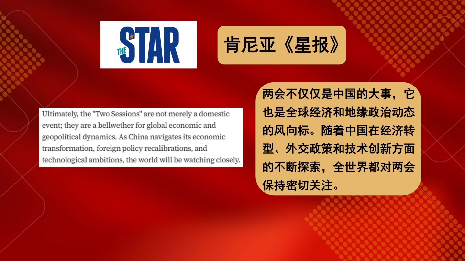 多家外國媒體紛紛用“全球性的重要意義”“直接影響全球市場”“全球的風(fēng)向標(biāo)”“全球感受到兩會(huì)的深遠(yuǎn)影響”這些描述,對中國兩會(huì)對世界的重要性給予高度肯定。