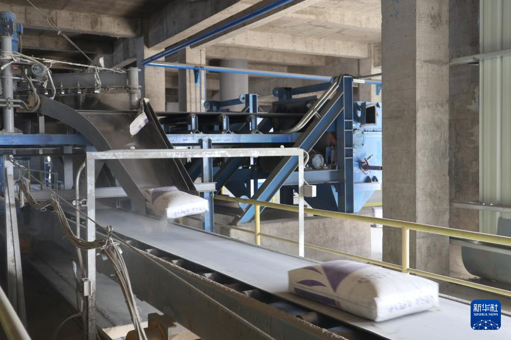3月5日,在埃塞俄比亞萊米國(guó)家水泥廠,一袋袋水泥在傳送帶上經(jīng)過(guò)。新華社記者 劉方強(qiáng) 攝