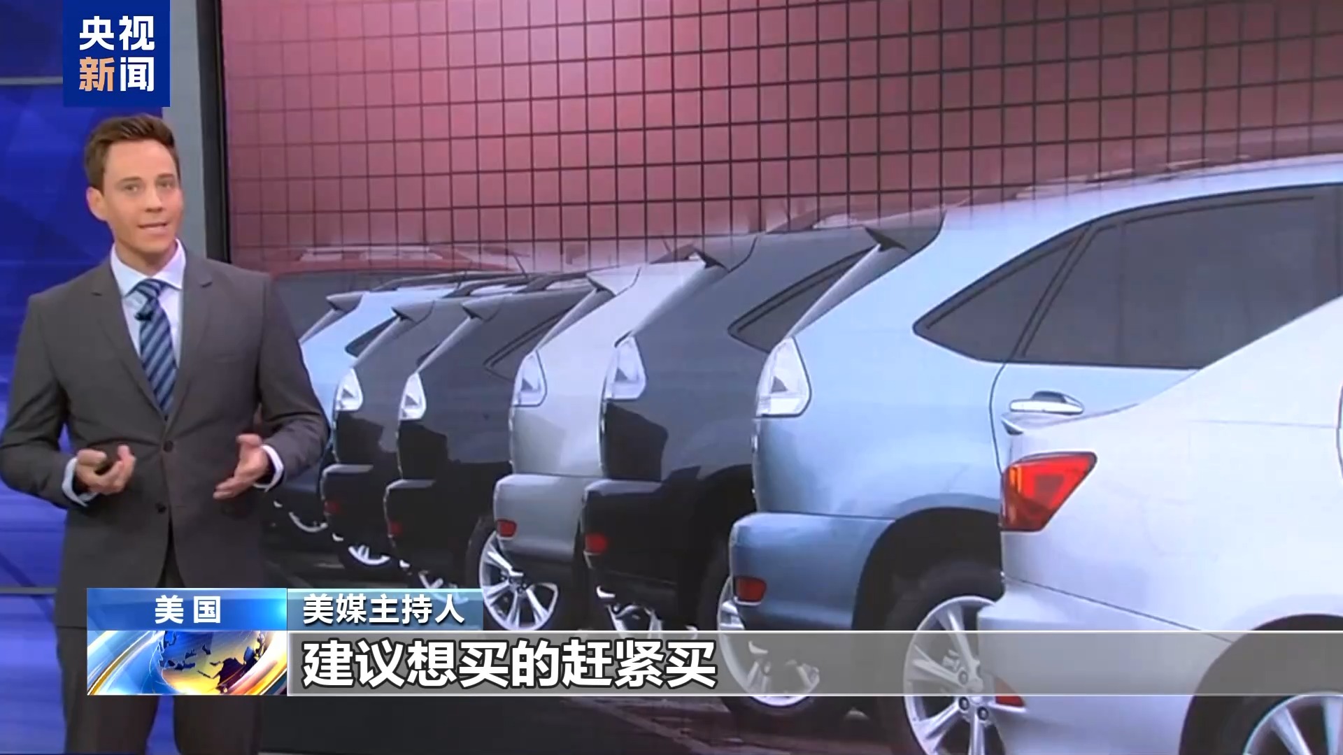 美媒主持人:我們先從汽車說起,建議想買的趕緊買。目前美國對所有非美國組裝的車輛征收25%關(guān)稅,這類車輛占市場總量的46%。但請注意,美國本土組裝的汽車同樣會漲價(jià),因?yàn)檫@些車輛的部分零部件產(chǎn)自海外,而零部件也面臨關(guān)稅。