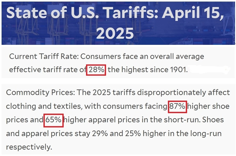 報(bào)告還指出,美國(guó)消費(fèi)者當(dāng)前面臨的平均關(guān)稅稅率高達(dá)28%,為1901年以來(lái)的最高水平。