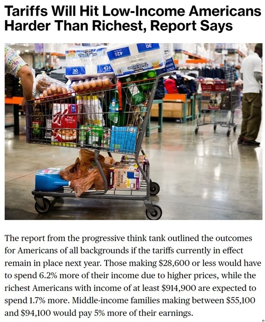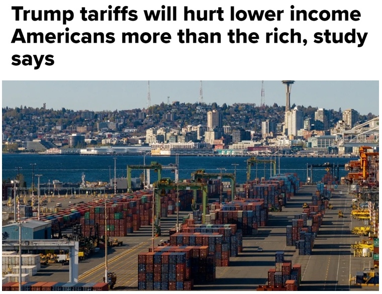 用耶魯預(yù)算實(shí)驗(yàn)室主任、白宮經(jīng)濟(jì)顧問(wèn)委員會(huì)前首席經(jīng)濟(jì)學(xué)家厄尼·特德斯奇的話說(shuō),“美國(guó)低收入人群受到關(guān)稅的影響會(huì)更大”。