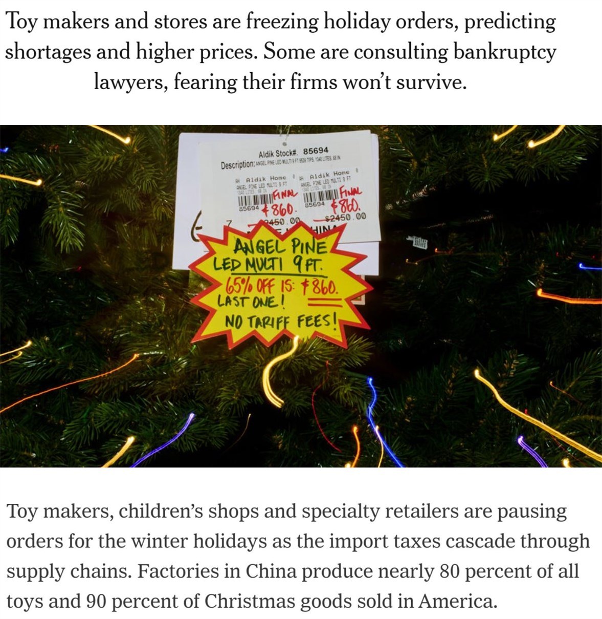 對于美國的節(jié)日產(chǎn)業(yè)來說,“中國制造”不可或缺,中國的工廠一直是美國進口商的一站式商店。但受美國政府濫施關(guān)稅的影響,急劇攀升的高昂成本令美國大量相關(guān)產(chǎn)品的制造商及零售商紛紛叫停了今年節(jié)日季的訂單。