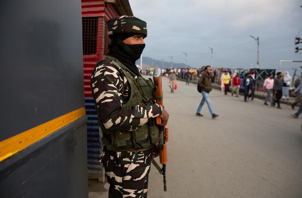 2021年10月11日,印度軍人在印控克什米爾斯利那加街頭執(zhí)勤。新華社發(fā)(賈韋德·達(dá)爾攝)
