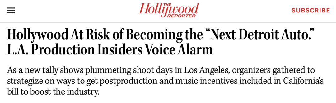 為此,加州正在研究如何采取激勵措施和補(bǔ)貼措施推動這些產(chǎn)業(yè)回歸,這恐怕才是恢復(fù)電影工業(yè)的良策。
