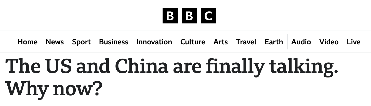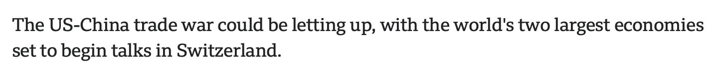 英國廣播公司的報(bào)道稱,隨著世界兩大經(jīng)濟(jì)體即將在瑞士開始會(huì)談,中美貿(mào)易戰(zhàn)可能正在緩和。