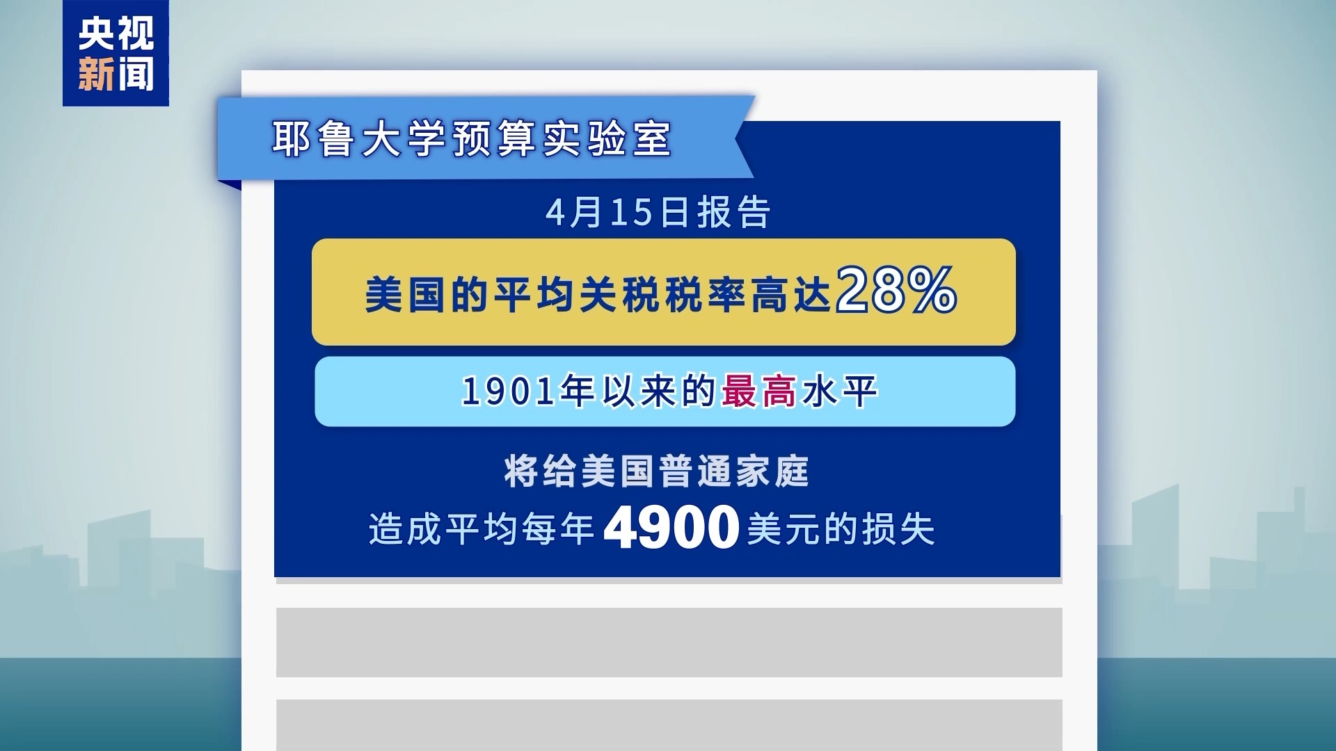 報(bào)告還說(shuō),現(xiàn)在的關(guān)稅將給美國(guó)普通家庭造成平均每年2800美元的損失。