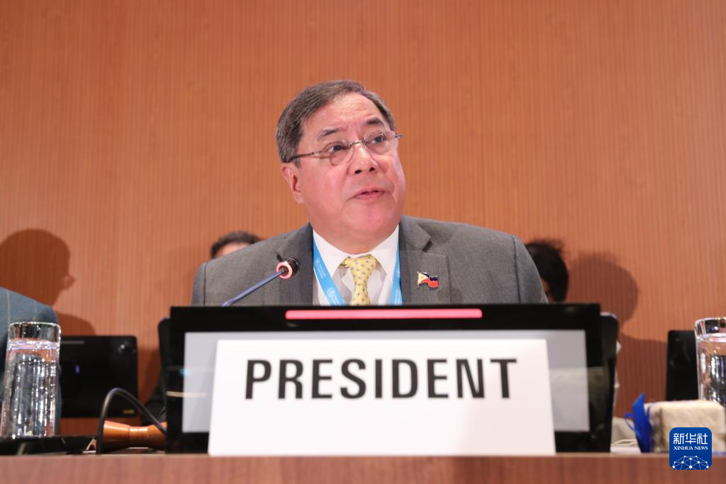 5月20日,在瑞士日內(nèi)瓦,第78屆世界衛(wèi)生大會(huì)主席赫爾博薩宣布審議通過(guò)“大流行協(xié)定”。新華社記者 杜哲宇 攝