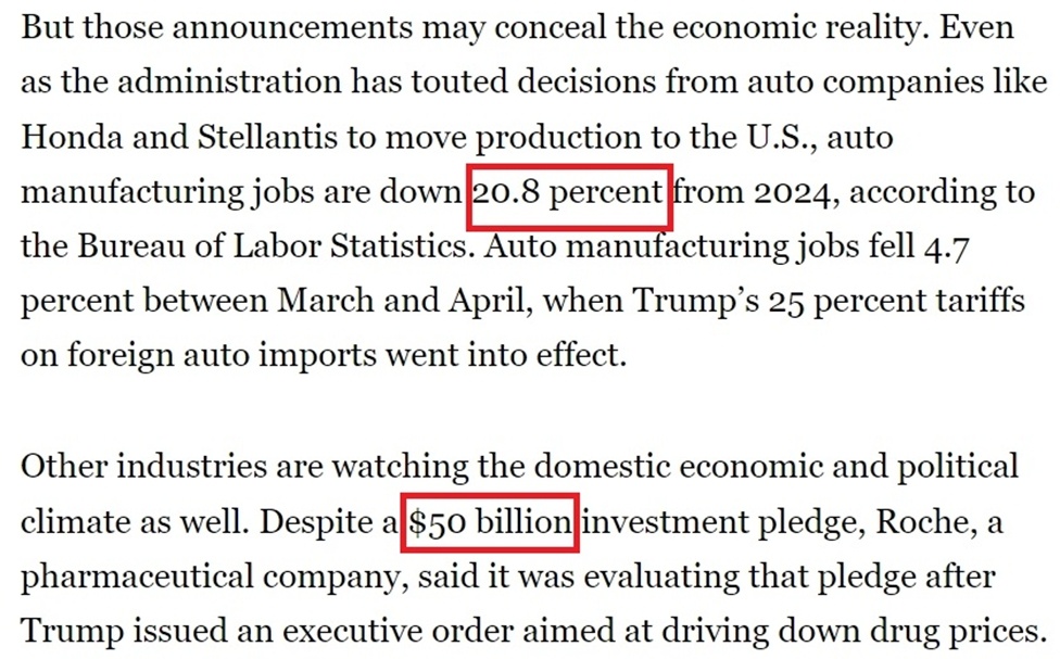 《政治報》的報道提到,在關稅政策深陷爭議的情況下,美國政府當前非??释麑ν庹故尽懊绹?jīng)濟增長”的跡象,以至于一些公司只要口頭表示“考慮增加在美國的產(chǎn)能”就能得到白宮的贊賞。但現(xiàn)實卻是,許多白宮吹噓的企業(yè)投資計劃要么已經(jīng)籌備多年,要么被人為夸大,不少還可能在未來生變。