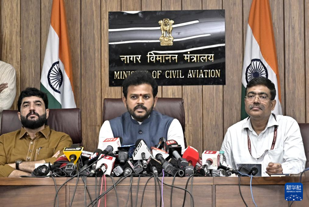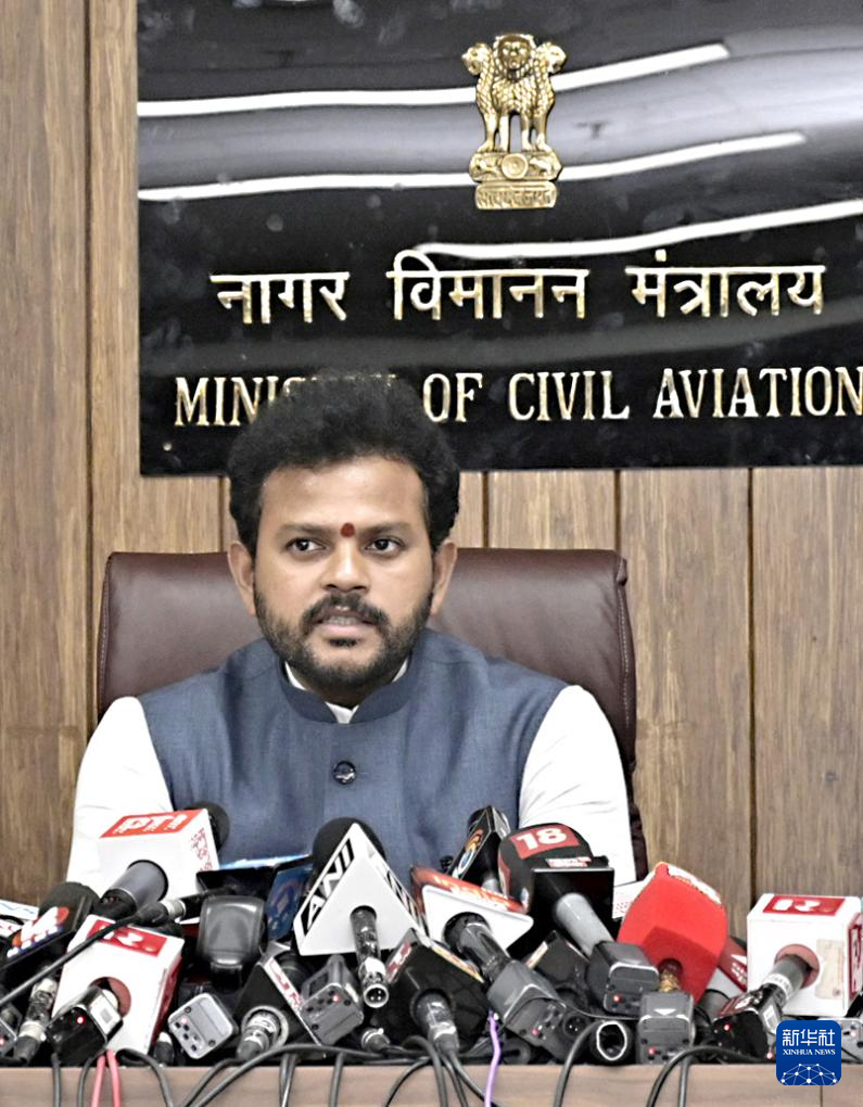 6月14日,印度航空部長拉姆·莫漢·奈杜在新德里出席新聞發(fā)布會(huì)。新華社發(fā)(印度政府新聞信息局供圖)