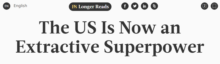 近日,世界報業(yè)辛迪加網(wǎng)站刊登一篇文章,標(biāo)題是《美國已經(jīng)成為一個榨取型的超級大國》。