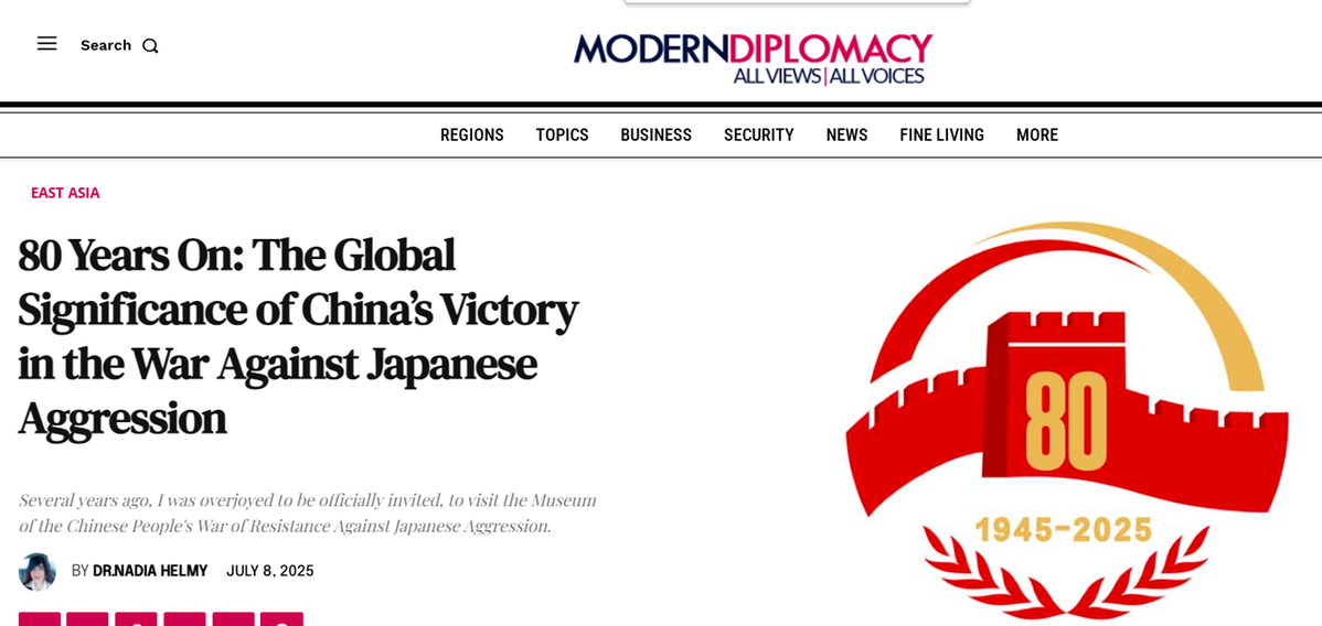 赫勒米教授在題為《80年過去:中國(guó)抗日戰(zhàn)爭(zhēng)勝利的世界意義》的文章中表示,中國(guó)抗戰(zhàn)勝利不僅是中華民族自強(qiáng)不息的壯舉,更為世界反法西斯戰(zhàn)爭(zhēng)勝利作出巨大貢獻(xiàn),中國(guó)所作的犧牲應(yīng)當(dāng)為全世界所銘記。