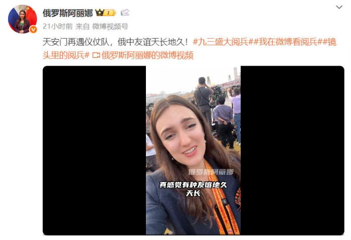 十年后,阿麗娜終于圓夢(mèng),來(lái)到了北京。九三閱兵當(dāng)天,阿麗娜在社交媒體上接連發(fā)布多條帖文,并用中文表達(dá)了自己的開心,“中國(guó)軍人太帥了”“俄中友誼天長(zhǎng)地久”!