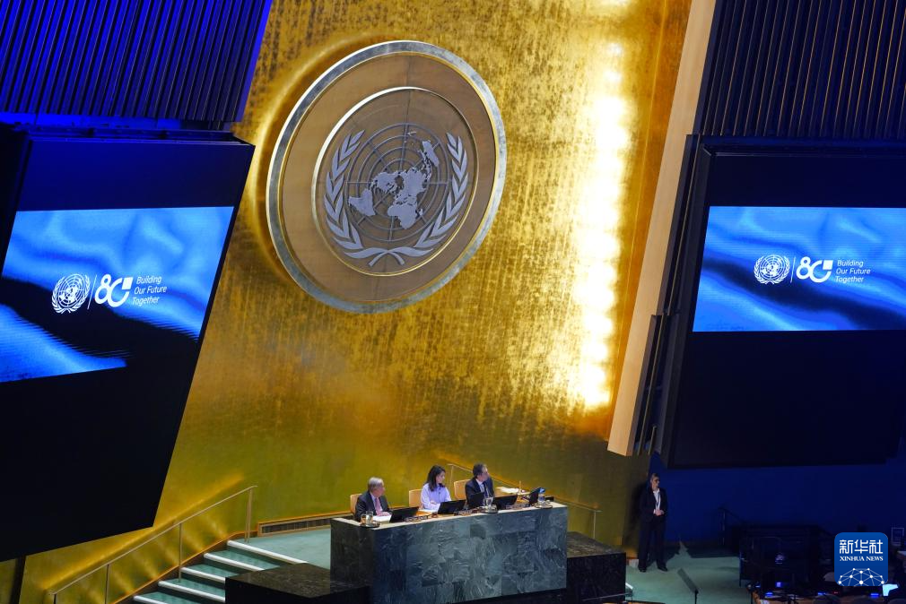 這是9月22日在位于紐約的聯(lián)合國總部拍攝的紀念聯(lián)合國成立80周年高級別會議現(xiàn)場。新華社記者 李睿 攝
