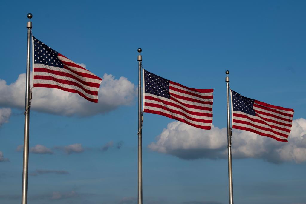 這是2020年8月19日在美國華盛頓拍攝的美國國旗。新華社記者劉杰攝