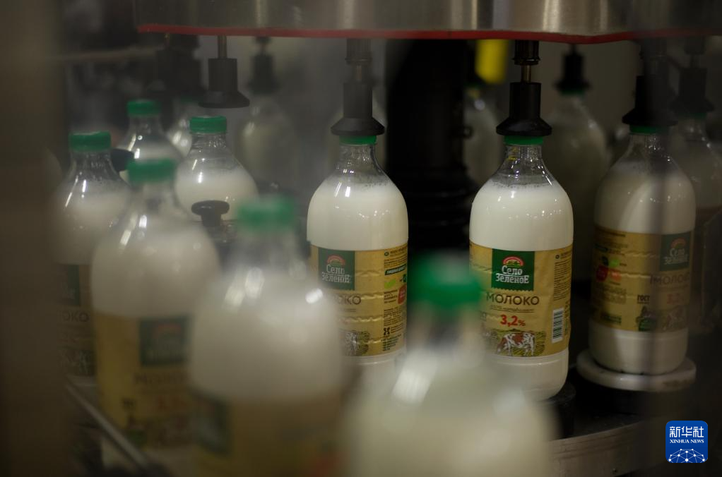 這是9月24日在俄羅斯烏德穆爾特共和國首府伊熱夫斯克一家乳制品生產企業(yè)拍攝的牛奶生產流水線。新華社記者 孟菁 攝