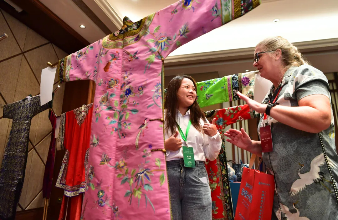 2024年10月27日,第二屆世界漢學(xué)家大會(huì)在福建南平舉行,活動(dòng)上舉行的非物質(zhì)文化遺產(chǎn)項(xiàng)目展示吸引許多參會(huì)嘉賓前來參觀體驗(yàn)。中新社記者 張斌 攝