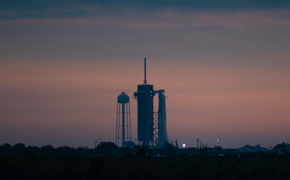 這是2020年5月27日在美國佛羅里達(dá)州肯尼迪航天中心拍攝的“獵鷹9”火箭和載人版“龍”飛船。新華社發(fā)(美國國家航空航天局供圖)