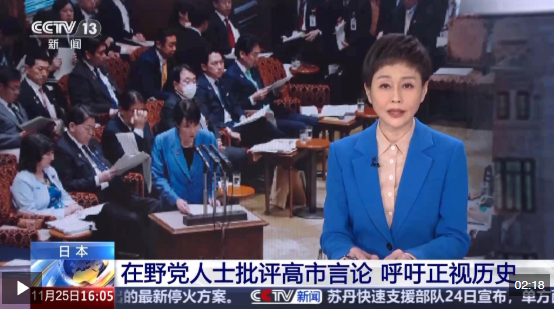 日本社民黨全國聯(lián)合常任干事 山城博治:我們大家都很氣憤,把不必要的戰(zhàn)爭主動招來,把本不該發(fā)生的事情引來,把自己拖入戰(zhàn)場。作為一個擁有和平憲法的國家,這是絕不可能被允許的事情。在1972年日中邦交正常化時,日本承認現(xiàn)在的中國政府是中國唯一的合法政府,明確表示“理解并尊重臺灣是中國領(lǐng)土的一部分”,所以這次高市竟然能堂而皇之地說出如此不可能、不可思議的話,我感到非常憤怒。