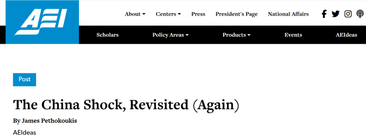 當(dāng)前全球經(jīng)濟(jì)復(fù)蘇乏力、貿(mào)易保護(hù)主義抬頭,部分西方政客與媒體頻繁炒作“中國(guó)沖擊論”,企圖將損人不利己的“關(guān)稅大棒”合理化。美國(guó)知名保守派智庫(kù)美國(guó)企業(yè)公共政策研究所(American Enterprise Institute for Public Policy Research)高級(jí)研究員詹姆斯·佩索科基斯(James Pethokoukis)近日發(fā)文稱,基于大量數(shù)據(jù)分析與案例研究,“中國(guó)沖擊論”站不住腳,中國(guó)融入全球經(jīng)濟(jì)促進(jìn)了美國(guó)經(jīng)濟(jì)增長(zhǎng),實(shí)際上顯著提高了美國(guó)人民的生活品質(zhì)。