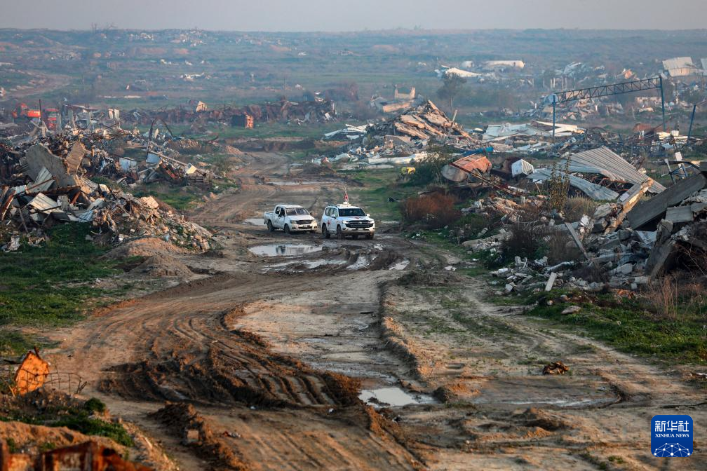 1月7日,在加沙城東南部的宰通社區(qū),紅十字國際委員會(huì)工作人員參與對(duì)加沙地帶最后一具以色列被扣押人員遺體的搜尋工作。新華社發(fā)(里澤克·阿卜杜勒賈瓦德攝)