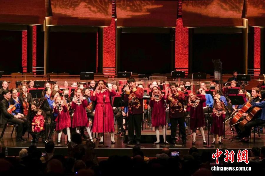當(dāng)?shù)貢r(shí)間2026年2月15日,第七屆“春之聲”中國(guó)新年音樂(lè)會(huì)在美國(guó)紐約林肯中心爵士樂(lè)中心玫瑰劇場(chǎng)舉行。圖為來(lái)自美國(guó)的兒童用中文表演歌曲串燒。 中新社記者 王帆 攝