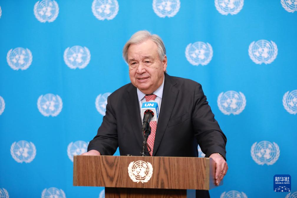 3月25日,聯(lián)合國秘書長古特雷斯在位于紐約的聯(lián)合國總部舉行的記者會上講話。新華社記者 謝鍔 攝