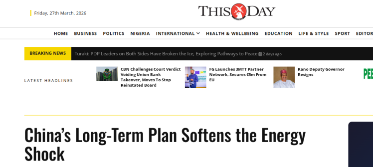 無(wú)獨(dú)有偶,尼日利亞《今日?qǐng)?bào)》報(bào)道稱,中東局勢(shì)惡化令全球能源市場(chǎng)陷入困境,多國(guó)在油價(jià)飆升中承受重壓。在這場(chǎng)風(fēng)暴中,有一個(gè)國(guó)家顯得格外從容——中國(guó)。文章認(rèn)為,中國(guó)能源戰(zhàn)略不僅有效拓展了可再生能源利用規(guī)模,更在相當(dāng)程度上降低了對(duì)海外油氣的依賴。中國(guó)的實(shí)踐為其他發(fā)展中國(guó)家展現(xiàn)了擺脫能源依附、實(shí)現(xiàn)自主發(fā)展的可行路徑。