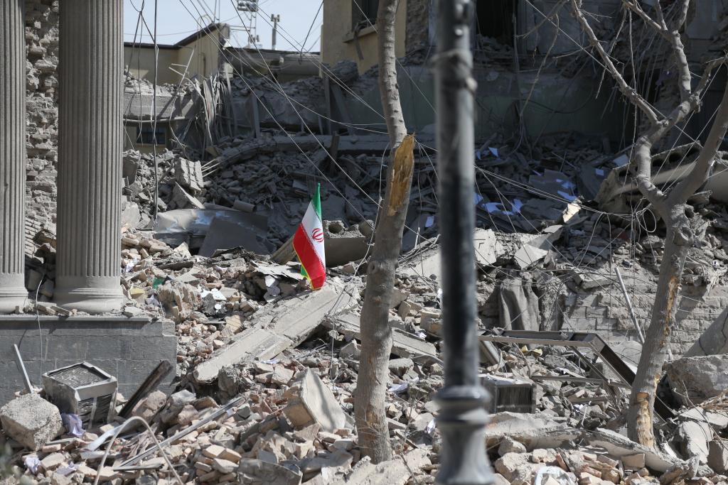 這是2026年3月4日在伊朗德黑蘭革命廣場(chǎng)附近拍攝的一處損毀的建筑。新華社記者沙達(dá)提攝