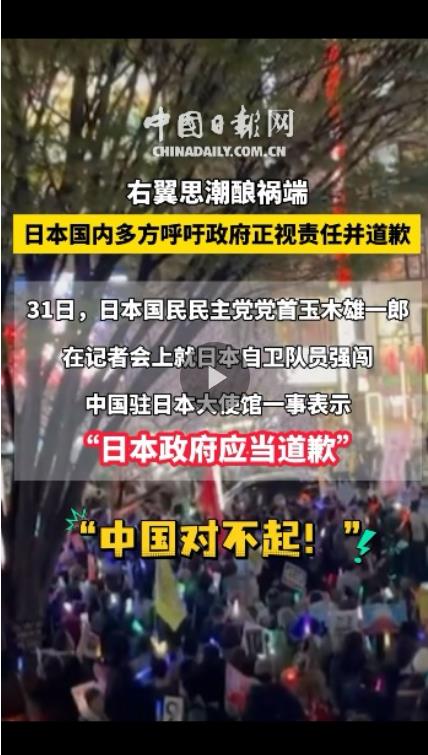 事件在日本國(guó)內(nèi)引發(fā)批評(píng)。25日,數(shù)千名日本民眾在國(guó)會(huì)前舉行抗議集會(huì),指責(zé)這是日本右翼排外主義造成的惡果,有人直指“這就是恐怖襲擊”,要求防衛(wèi)大臣辭職。28日,部分日本民眾在東京新宿舉行抗議集會(huì),高呼“高市道歉”“小泉道歉”“中國(guó)對(duì)不起”等口號(hào),要求日本政府就此事件向中國(guó)道歉。
