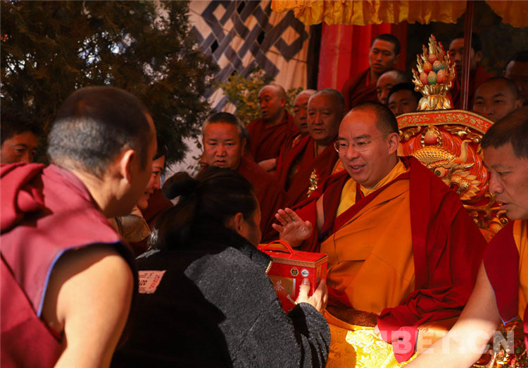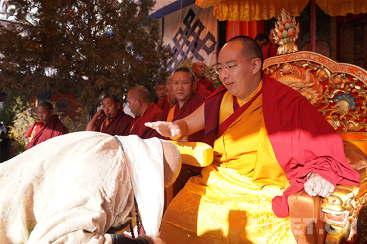 中國西藏網(wǎng)訊 11月13日至14日,全國政協(xié)常委、中國佛教協(xié)會副會長、中國佛協(xié)西藏分會會長班禪額爾德尼?確吉杰布在西藏日喀則市扎什倫布寺多加大院為信教群眾摸頂賜福,這是近年來規(guī)模最大的一次班禪摸頂賜福活動(dòng)。圖為班禪摸頂賜福 攝影:王淑(中國西藏網(wǎng) 記者/王淑 賈華加)