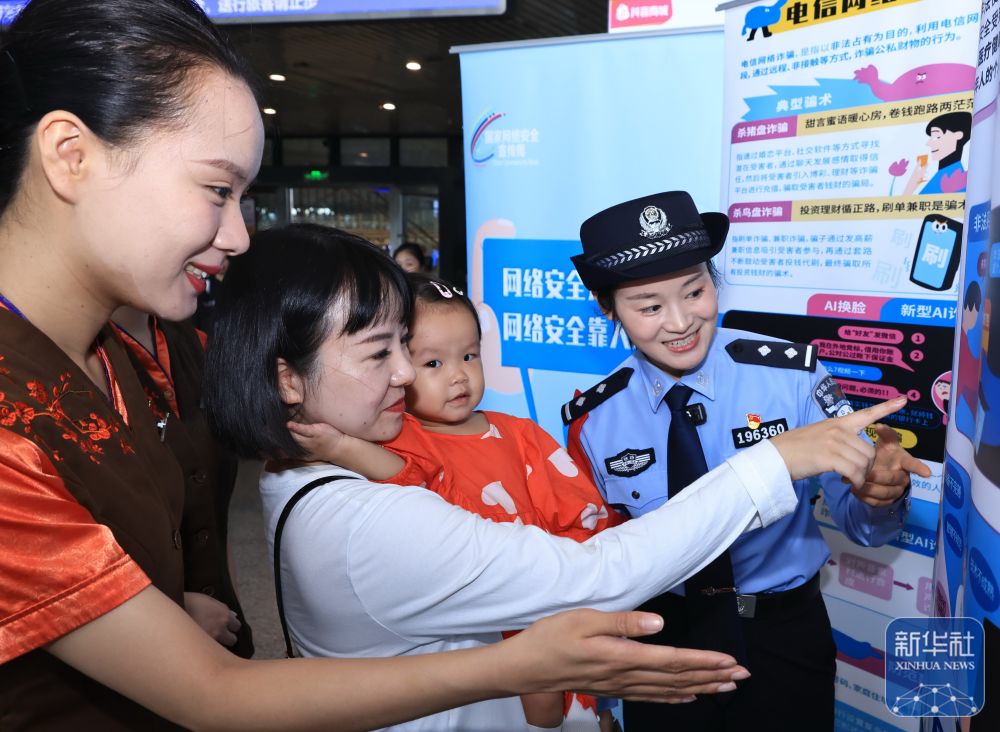 9月15日,湖北武漢鐵路公安處武漢站派出所民警在武漢站為旅客講解網(wǎng)絡(luò)安全知識。新華社發(fā)(趙軍攝)