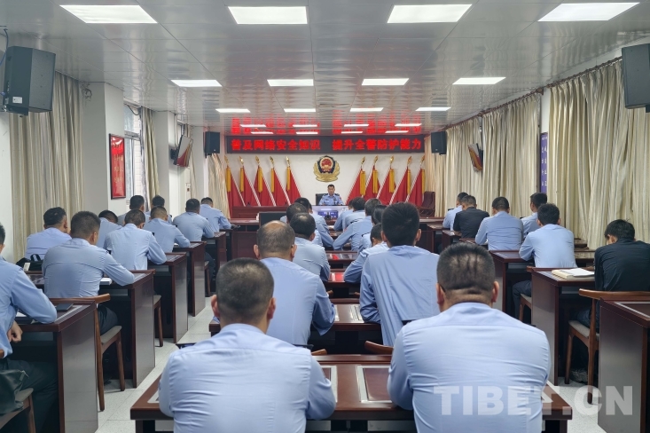 圖為聶拉木邊檢站民警集體學(xué)習(xí)網(wǎng)絡(luò)安全知識