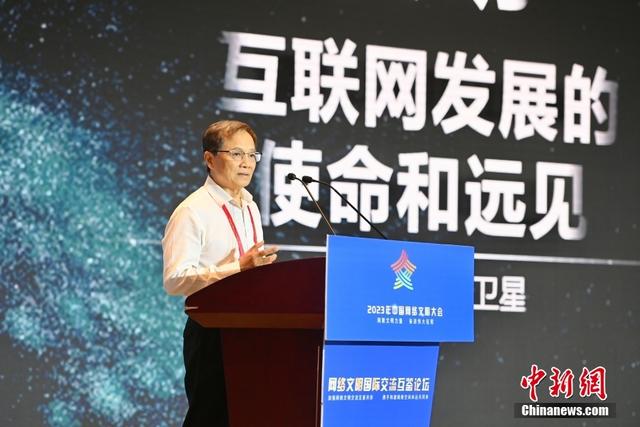7月18日,2023年中國網(wǎng)絡(luò)文明大會網(wǎng)絡(luò)文明國際交流互鑒論壇在廈門舉辦。中外嘉賓圍繞加強網(wǎng)絡(luò)文明交流、互鑒、共存等話題展開探討。圖為光明日報社原副總編輯、浙大城市學院文明與傳播研究院研究員沈衛(wèi)星作主題演講。中新社記者 王東明 攝
