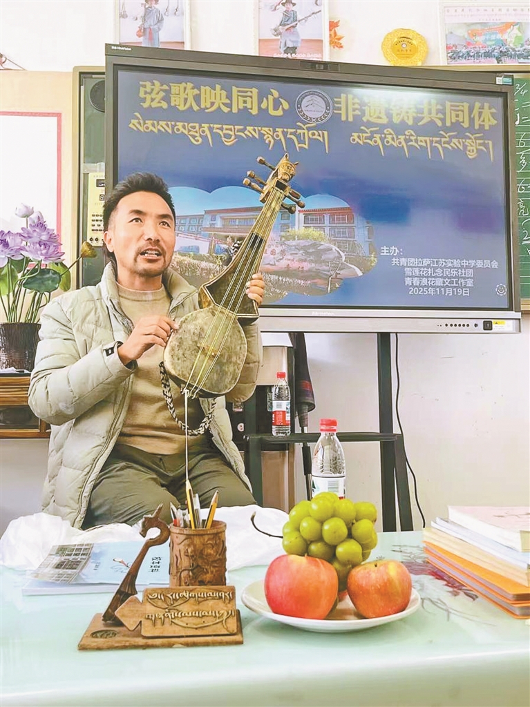 校本課程傳承文脈?!氨緦W(xué)期我們開設(shè)了54門校本課程?!辈苄∶犯嬖V記者,“比如漆畫課,孩子們把藏族紋飾和漢族繪畫技法融合在一起;扎念琴彈唱課上,老師引導(dǎo)學(xué)生把身邊的故事編成歌詞來唱。孩子們在動手實(shí)踐中,自然就體會到中華文化的博大精深,也增強(qiáng)了對自己民族文化的認(rèn)同感和自豪感?!蹦壳?,學(xué)校已有3名學(xué)生成為西藏自治區(qū)藏戲傳承人。