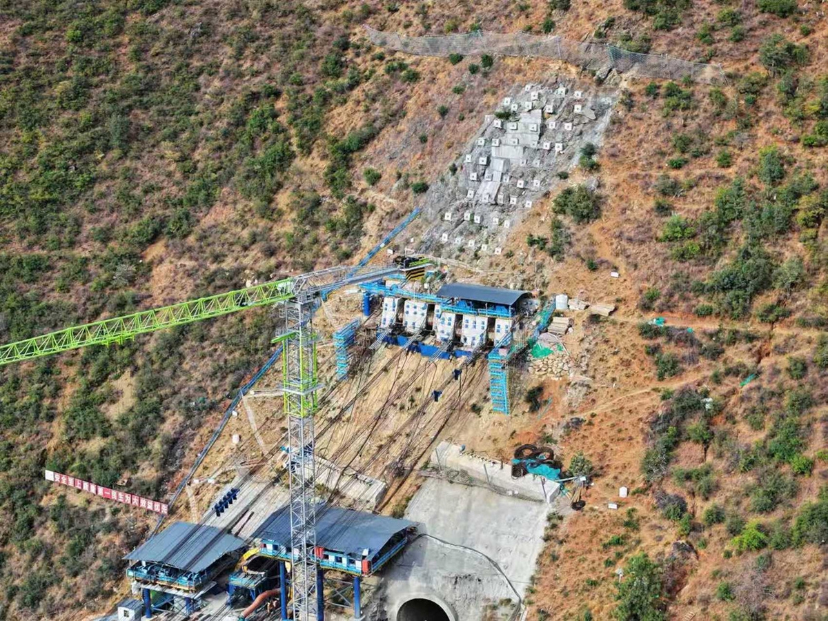 15噸輔助纜索吊——“搭建骨架”。在臨時(shí)索道完成基礎(chǔ)物料運(yùn)輸后,2套15噸輔助纜索吊于2025年8月接力進(jìn)場,核心任務(wù)是搭建木里岸作業(yè)鋼平臺、隧道錨洞口操作架等關(guān)鍵設(shè)施,并承擔(dān)中小型設(shè)備轉(zhuǎn)運(yùn)、施工渣土短途運(yùn)輸?shù)裙ぷ?,?0噸主纜索吊系統(tǒng)安裝和后續(xù)施工提供作業(yè)基礎(chǔ)。