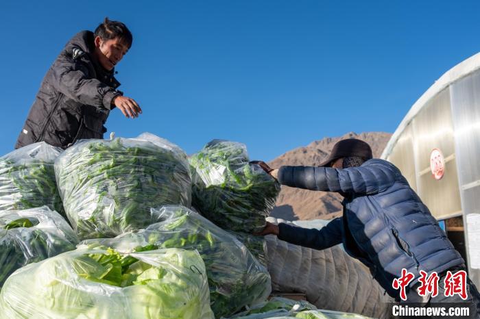 1月28日上午,航拍西藏日喀則珠峰現(xiàn)代農(nóng)業(yè)科技創(chuàng)新博覽園蔬菜大棚。圖為當(dāng)?shù)剞r(nóng)牧民轉(zhuǎn)運剛采摘的大棚蔬菜前往日喀則市區(qū)。[詳細(xì)]