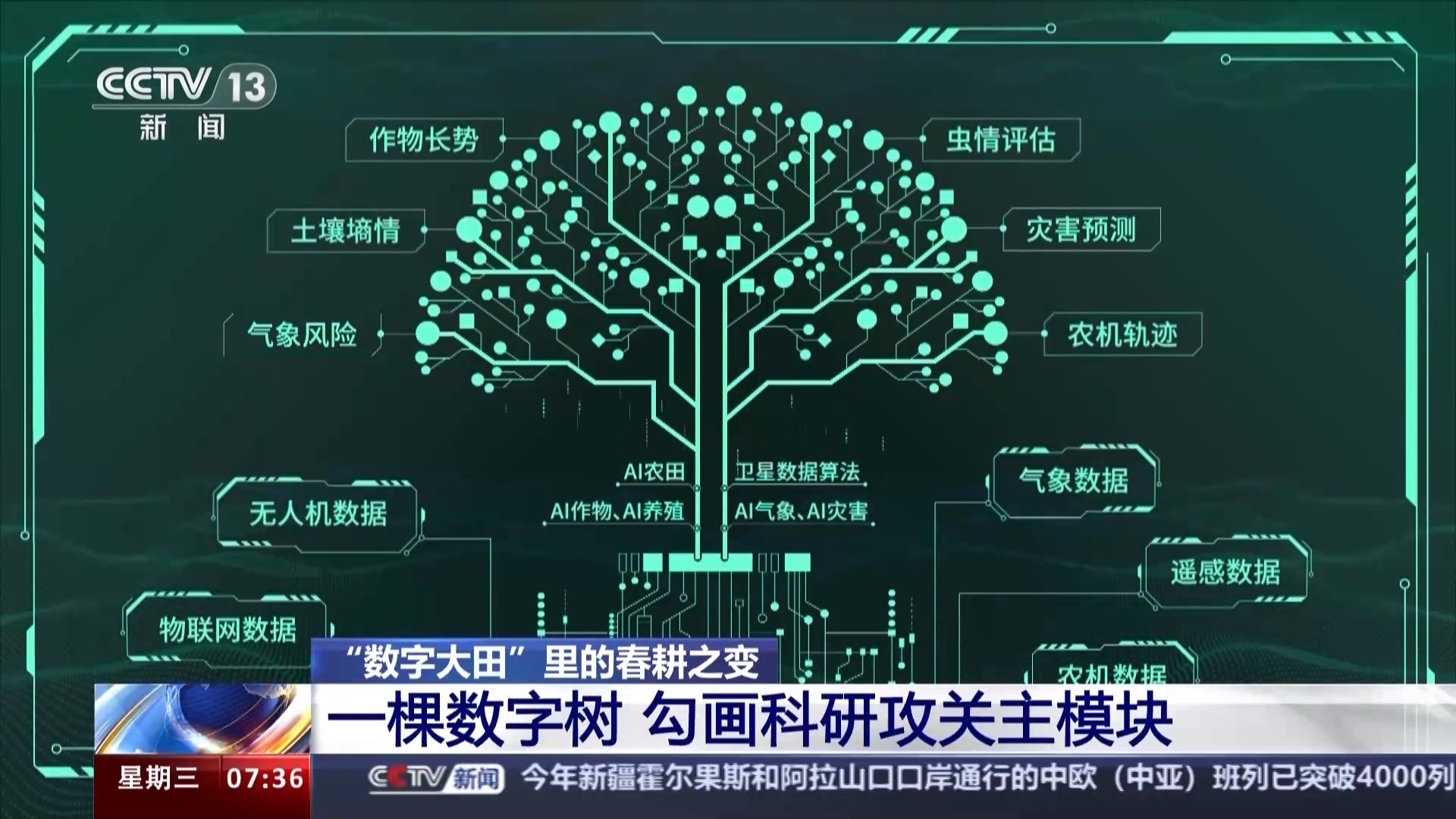 從眼前這個(gè)樹狀協(xié)作圖基本可以看出團(tuán)隊(duì)的架構(gòu):樹根是多維大數(shù)據(jù),由遙感衛(wèi)星、氣象、物聯(lián)網(wǎng)等收集從天到地的農(nóng)業(yè)數(shù)據(jù),遙感團(tuán)隊(duì)、氣象團(tuán)隊(duì)負(fù)責(zé)數(shù)據(jù)收集、預(yù)處理;樹干是骨架,由遙感、氣象以及人工智能人員組成團(tuán)隊(duì)建模,對(duì)基座數(shù)據(jù)進(jìn)行分析;樹冠是數(shù)據(jù)成果,長(zhǎng)出田塊位置、作物長(zhǎng)勢(shì)、災(zāi)害預(yù)警等信息。最后通過計(jì)算機(jī)工程師的搭建,一塊塊數(shù)字農(nóng)田就出現(xiàn)在屏幕里。