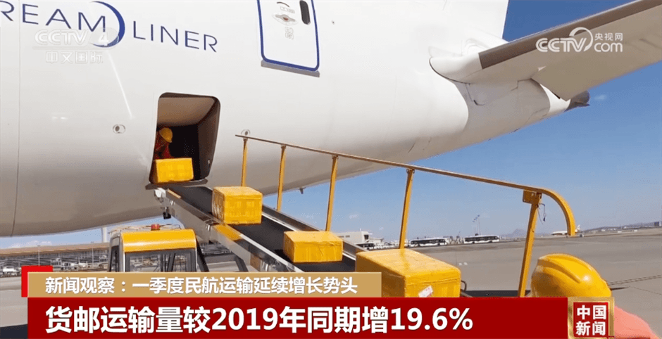 貨運(yùn)方面,全行業(yè)一季度共完成貨郵運(yùn)輸量200.7萬(wàn)噸,為歷年一季度貨運(yùn)量最高值,同比增長(zhǎng)34.4%,較2019年同期增長(zhǎng)19.6%。其中,國(guó)內(nèi)航線較2019年同期增長(zhǎng)8.2%,國(guó)際航線較2019年同期增長(zhǎng)43.6%。