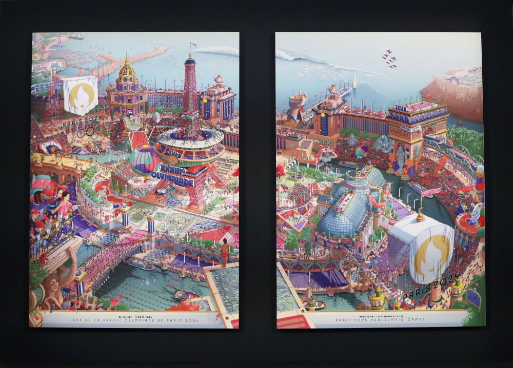 這幅作品由法國著名攝影師加托尼耗時(shí)2000小時(shí)完成,描繪了一個(gè)多元且繁華的微觀世界——一座巨大的城市體育場,將巴黎的地標(biāo)性建筑在其中重新排列組合。埃菲爾鐵塔貫穿在法蘭西體育場中間,塞納河、凱旋門、協(xié)和廣場等都在畫中,而除了這些巴黎以及法國的標(biāo)志性元素,本屆奧運(yùn)會(huì)和殘奧會(huì)的運(yùn)動(dòng)項(xiàng)目也散落在海報(bào)的各處角落。