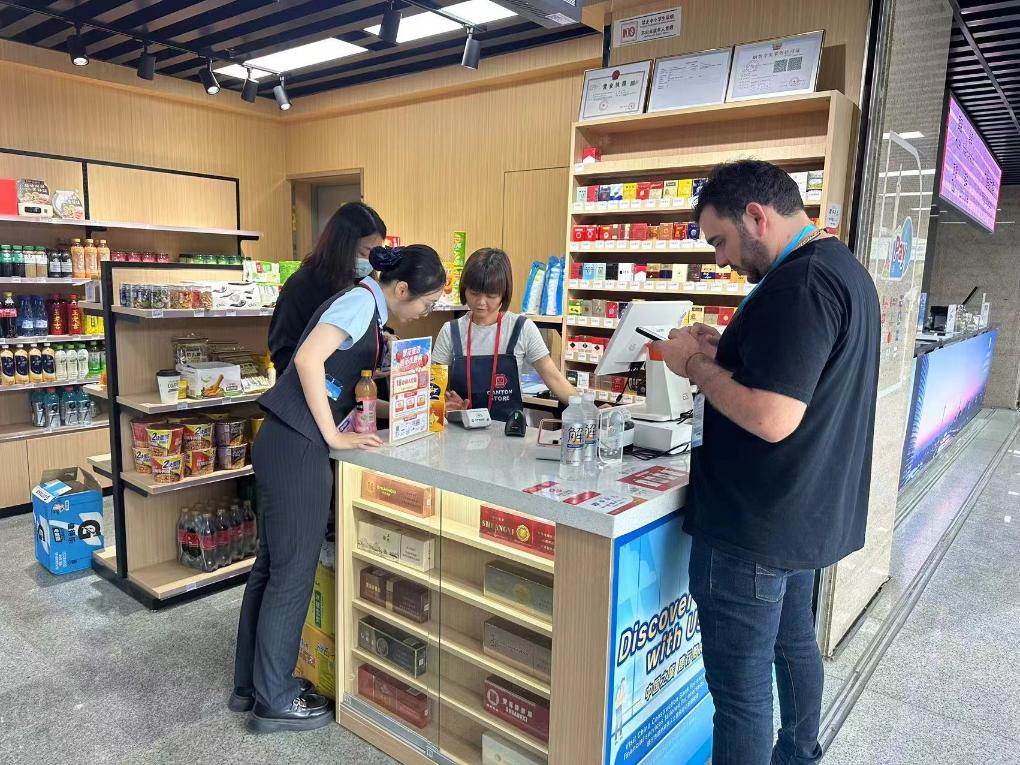 場館外,支付便利化措施早已全方位鋪開。從入境廣州開始,白云國際機場的醒目位置設(shè)有境外來賓支付服務(wù)咨詢臺,多語種宣傳相關(guān)政策,現(xiàn)場指引入境人員開通電子支付?!拔覀円龑?dǎo)商鋪支持使用帶有Visa、Master、美國運通等標(biāo)識的國際標(biāo)準(zhǔn)化信用卡,機場商鋪外卡POS機做到至少‘一鋪一臺’?!睆V州市商務(wù)局相關(guān)負(fù)責(zé)人介紹。