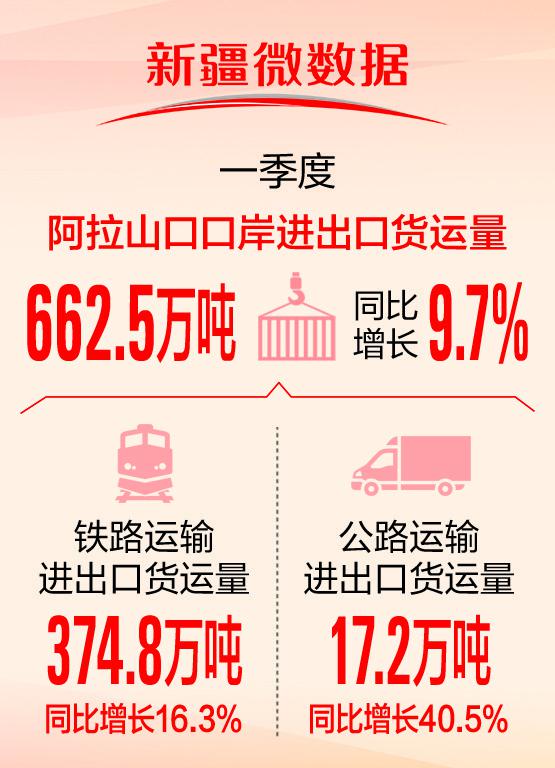 一季度,阿拉山口口岸鐵路運(yùn)輸進(jìn)出口貨運(yùn)量374.8萬(wàn)噸,同比增長(zhǎng)16.3%;公路運(yùn)輸進(jìn)出口貨運(yùn)量17.2萬(wàn)噸,同比增長(zhǎng)40.5%。公路、鐵路進(jìn)出口貨運(yùn)量均呈現(xiàn)穩(wěn)步上升的局面。