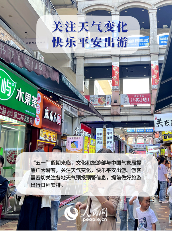 "五一"假日期間,江南、華南、西南等地降水強(qiáng),強(qiáng)對(duì)流天氣多發(fā),對(duì)戶外旅游活動(dòng)影響較大,雷暴大風(fēng)等強(qiáng)對(duì)流天氣對(duì)山區(qū)、水上等旅游活動(dòng)項(xiàng)目會(huì)造成不利影響,請(qǐng)密切關(guān)注當(dāng)?shù)貧庀蟛块T(mén)預(yù)報(bào)預(yù)警信息,提前做好防范措施。