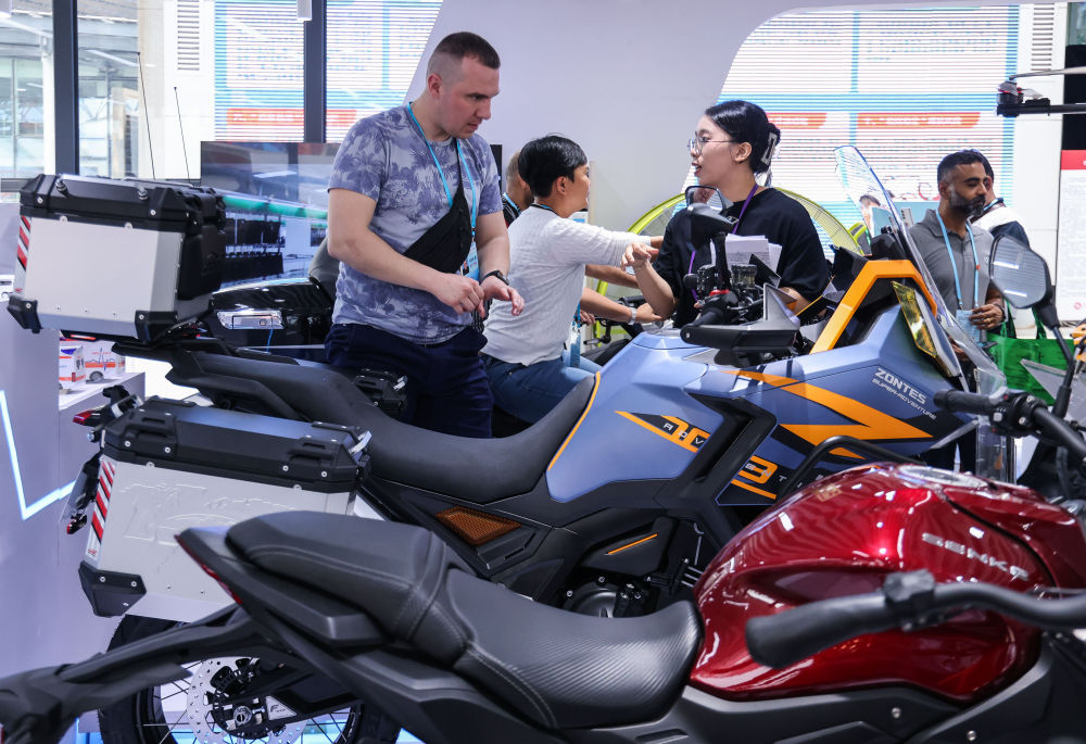 2024年4月15日,采購商在第135屆廣交會(huì)上了解摩托車產(chǎn)品。新華社記者 劉大偉 攝