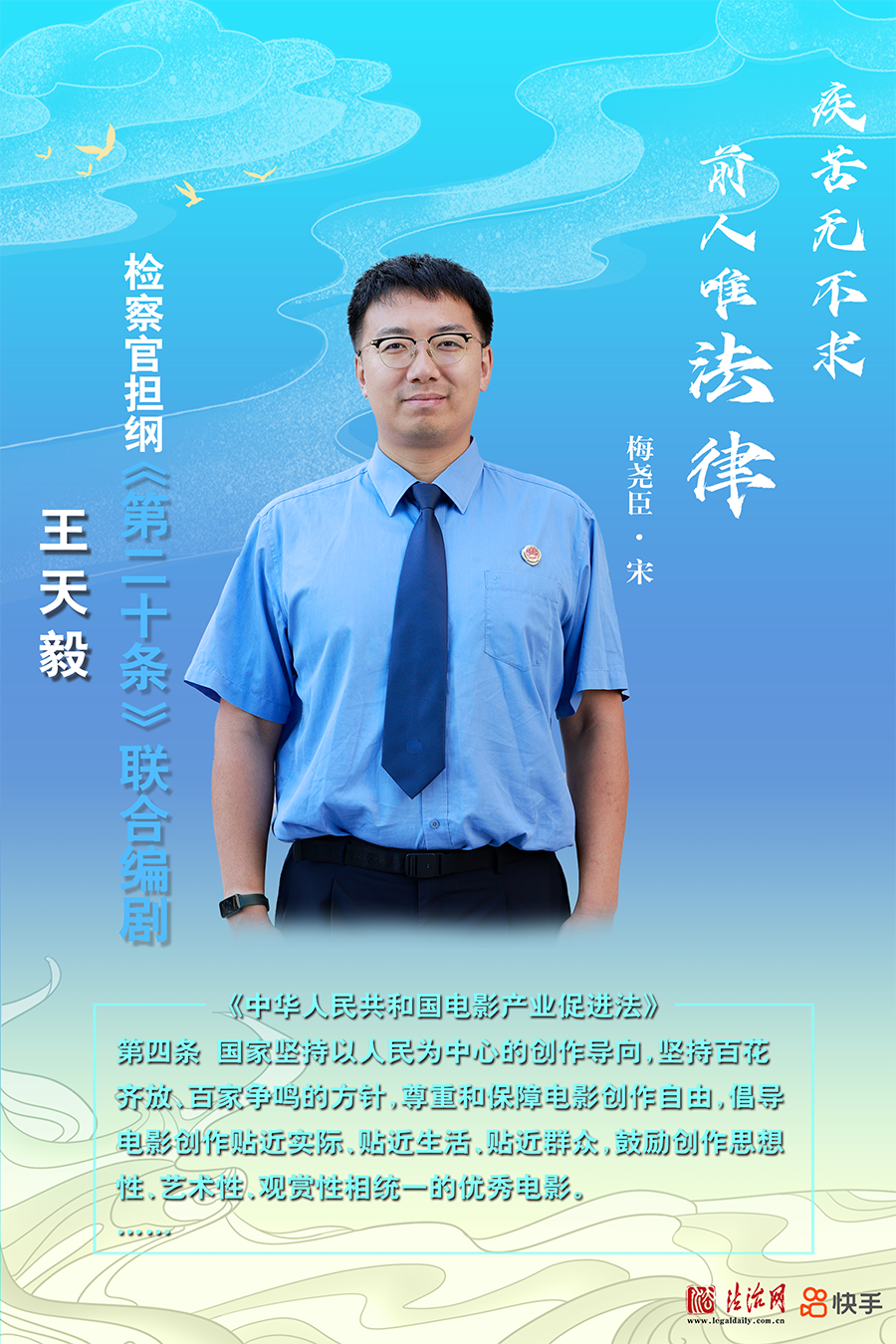 北京市朝陽區(qū)人民檢察院第四檢察部副主任王天毅作為聯(lián)合編劇,深度參與《第二十條》劇本創(chuàng)作。劇本中,涉及檢察官工作的內(nèi)容都由王天毅執(zhí)筆。《第二十條》是國內(nèi)首部聚焦“正當防衛(wèi)”議題的法治題材影片,以藝術(shù)性的角度向觀眾闡明:“法不能向不法讓步”不是口號。