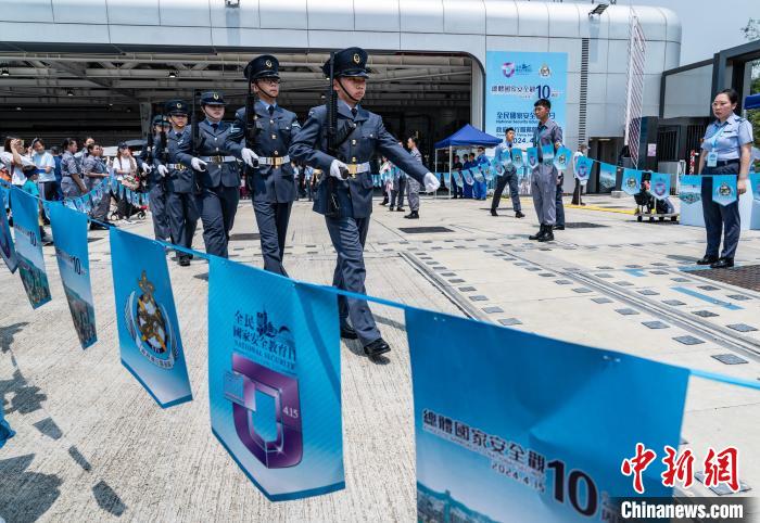 4月13日,香港特區(qū)政府保安局下轄的各紀(jì)律部隊(duì)舉行“全民國家安全教育日”開放日活動(dòng)。圖為香港航空青年團(tuán)成員在政府飛行服務(wù)隊(duì)開放日活動(dòng)上展示中式步操。(資料圖片) 中新社記者 侯宇 攝