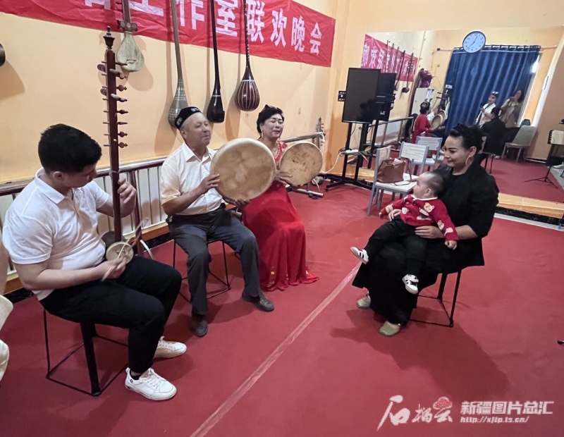 棗然木和女兒、女婿都是哈密木卡姆項(xiàng)目代表性傳承人,她的老伴賽買提·艾力木是納格拉鼓哈密市級代表性傳承人。像這樣一家有好幾位非遺傳承人的家庭,在回城鄉(xiāng)并不是個(gè)例。