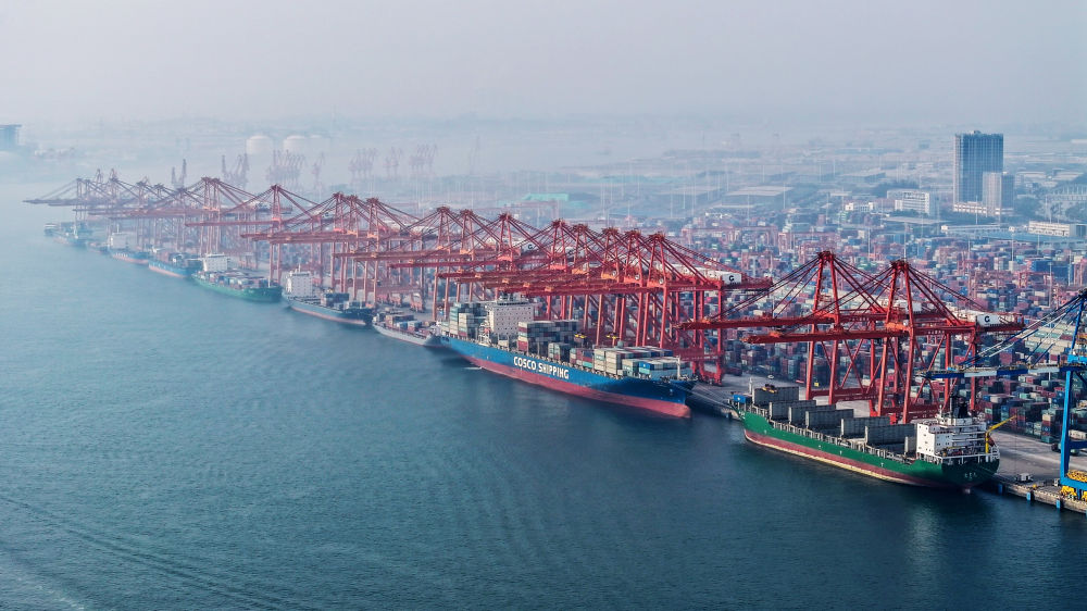 在廣西欽州港碼頭,多艘海輪在排隊(duì)卸貨(無人機(jī)照片,2024年3月28日攝)。新華社記者 張愛林 攝