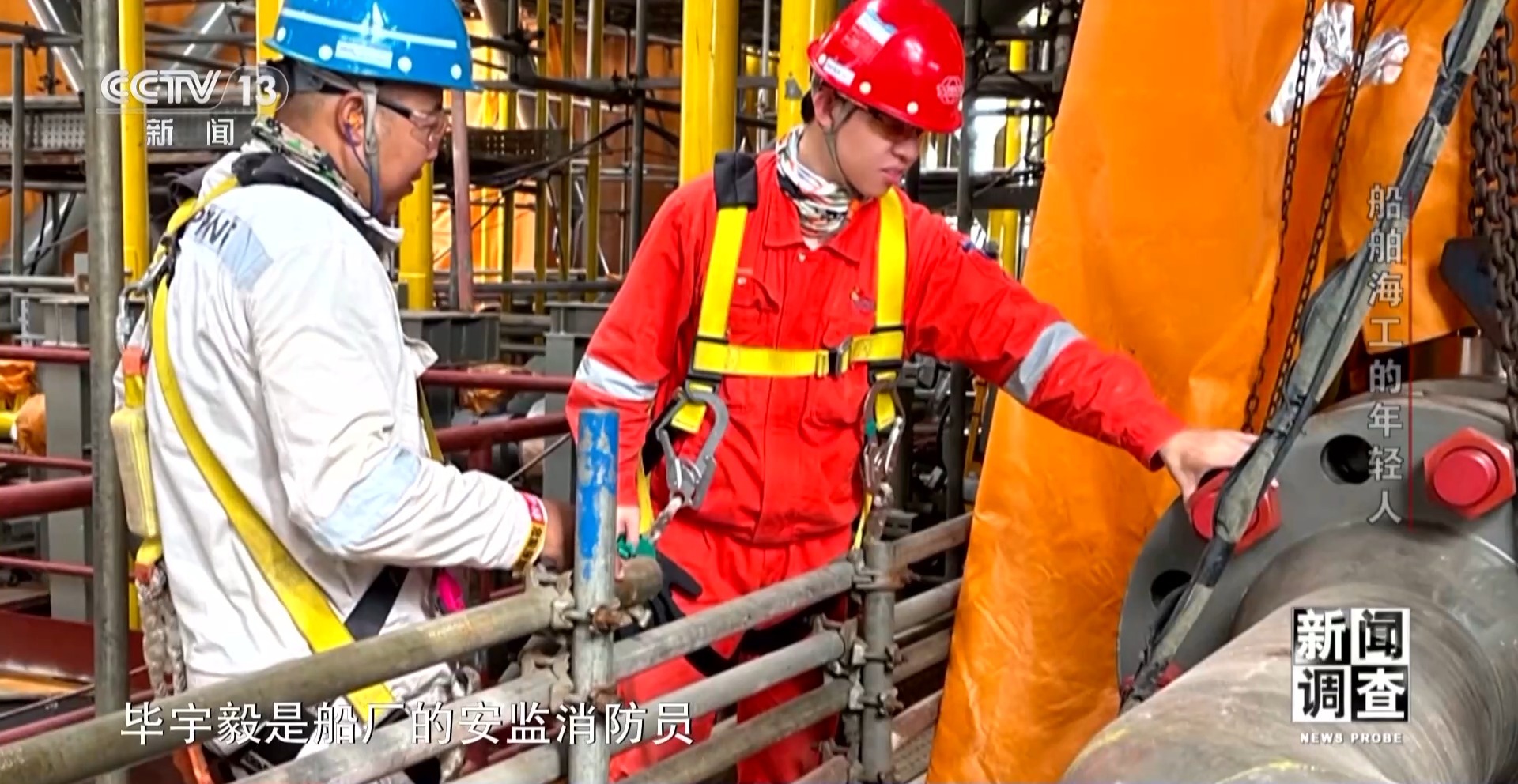 啟東中遠(yuǎn)海運(yùn)海洋工程有限公司安監(jiān)消防員 畢宇毅:那個(gè)船非常漂亮,也是我進(jìn)入這個(gè)行業(yè)第一個(gè)學(xué)習(xí)的項(xiàng)目,在一個(gè)300多米的船上,每天能走兩萬步。等到項(xiàng)目交付的那一刻,等這個(gè)船嶄新擺在碼頭的時(shí)候,大家都感覺非常自豪。那一刻你也不知道看的是什么,可能看的就是過去兩年半的青春奉獻(xiàn)在了這個(gè)大國(guó)重器上面。